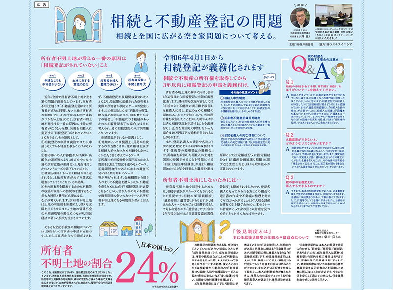 2023年4月8日福井県フェニックスプラザにて、「所有者不明土地問題」をテーマとして、小澤が講演いたしました。